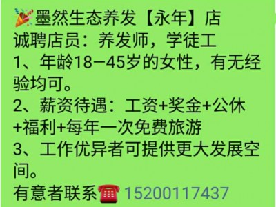 诚聘店员:养发师,学徒工