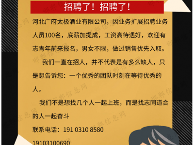 广府春酒厂招聘公司高管/会计/车间主任/做饭/库管/办公室主任/门市营业员/电工维修/销售精英、团购部业务等人员(干过保险的优先)电话:/19103100690/6796888