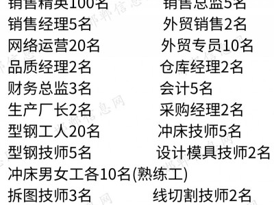 冲床技师3名,冲床工熟悉20名,型钢技师2名,型钢工人20名,