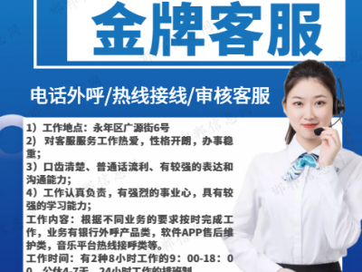 招聘电话外呼/热线接线/审核客服,薪酬:2500-4000食宿暂不提供,地点:永年区广源街6号,联系电话:/13931063028