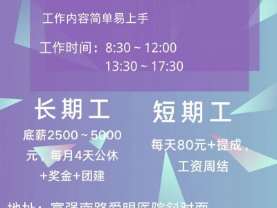 招聘电话客服:无销售性质,短期一天80元+提成,长期:薪资2500–5000元,每月4天公休+奖金+团建,联系方式:15613041999//13633206266微信同步