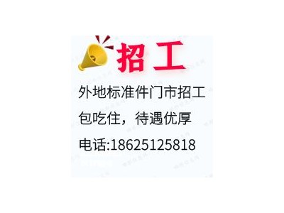 外地标准件门市招工,包吃住,待遇优厚,