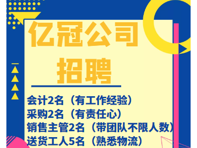 亿冠公司招聘: