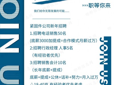 3:招聘销售会计10名(长年底薪+提成)底薪+提成+公休+话补+努力=月入过万