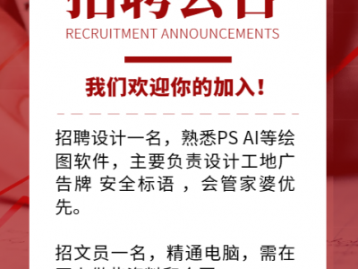 招聘设计一名,熟悉PS AI等绘图软件,主要负责设计工地广告牌 安全标语 ,会管家婆优先。