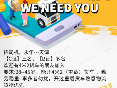 要求:28--45岁,能开4米2(重载)货车 ,勤劳稳重 事多者勿扰,开过重载货车熟悉物流货物优先