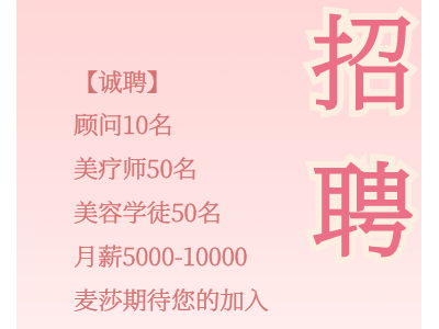 招聘:顾问10名、美疗师50名、美容学徒50名