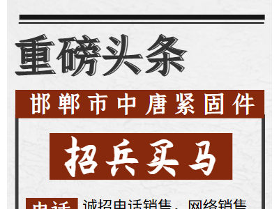 邯郸市中唐紧固件常年诚招电话销售,网络销售(有无经验均可,有经理带)