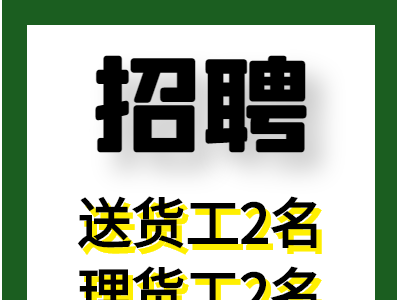 招聘:1、永年河北铺周边物流送货工人2名,4.2米蓝牌车,会开叉车的优先。2、仓库理货工人2名。以上人员要求干活踏实、好沟通,工资面议,中午管饭。联系电话13930042666