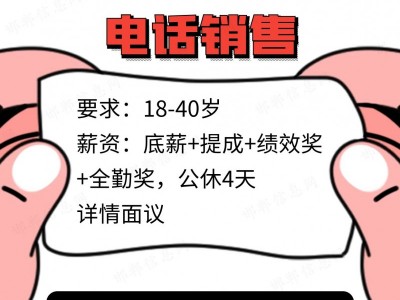 邯郸宁冀紧固件有限公司招聘:电话销售18-40岁,薪资:底薪+提成+绩效奖+全勤奖,公休4天,详情面议地址:产业城东区22-111,联系电话:15612077805