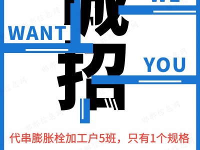 诚招代串膨胀栓加工户5班,只有1个规格,装袋子就行,不用装盒。叉车装卸,常年不停,有意联系13730401212