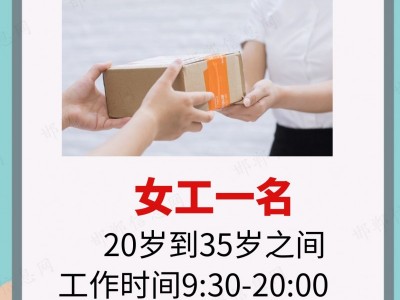 菜鸟驿站金典家园店,招聘女工一名,20岁到35岁之间,工作时间9点半到下午8点,工资面谈,联系电话18931049278。