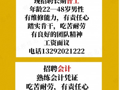 环保设备运营维护招聘长期普工(男22—48岁)有维修能力,工资面议,电话13292021222