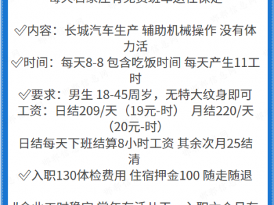 ✅内容:长城汽车生产 辅助机械操作 没有体力活