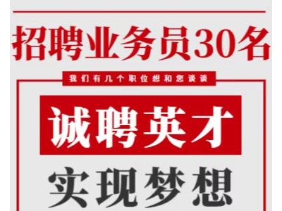 招聘业务员30名!要求语言清晰,沟通能力强,有责任心,学历不限,有无经验均可上岗。