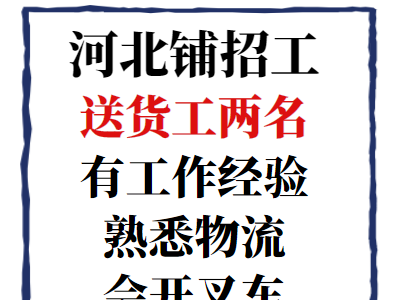招河北铺送货工人两名,要求有工作经验熟悉物流,会开叉车电话13643109878