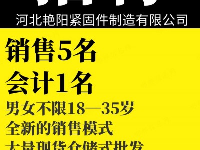 公司招聘:销售5名只招五名,会计一名,男女不限18—35岁。全新的销售模式:大量现货仓储式批发