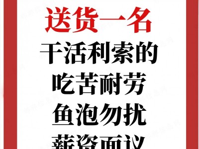 招工:送货一名,干活利索的,吃苦耐劳,鱼泡勿扰。薪资面议 电话15100300680