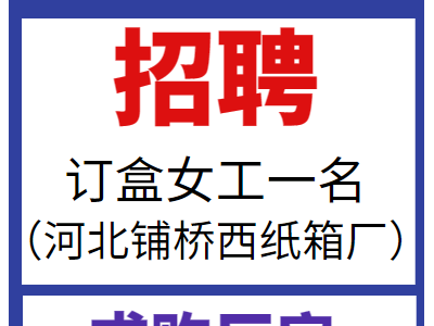 招聘订盒女工一 名(河北铺桥西纸箱厂)
