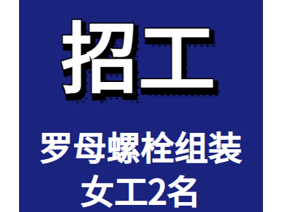 (上下班时间自由)招临时罗母螺栓组装女工2名 螺栓型号30,组装一套包括1个螺栓、两个罗母、两个平垫 组装费1毛一套,另招临时半把刀修理工1名,地址施庄村东种菜大棚附近