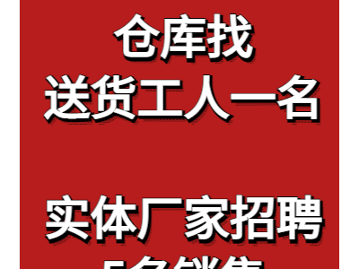 仓库找送货工人一名,要求有送货经验。会开车有驾驶证,能开叉车。