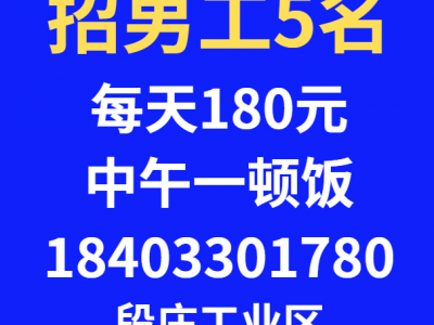 招男工5名,每天180元中午一顿饭