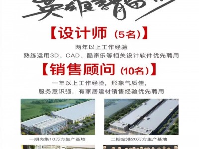 雅丽家-全屋定制,诚招业务员,设计师,有底薪,有提成,有公休,有全勤奖。