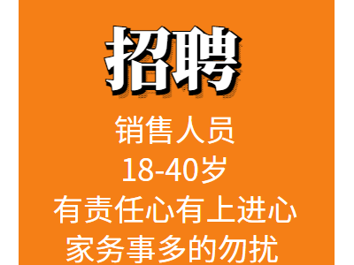 招聘销售工矿产品(18-40岁)有责任心有上进心,家务事多的勿扰