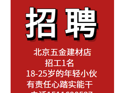 招聘 北京五金建材店招工1名 18-25岁的年轻小伙