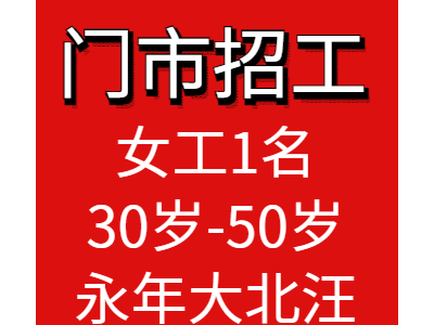 门市招女工1名,年龄30岁到50岁地址永年大北汪电话15830098500