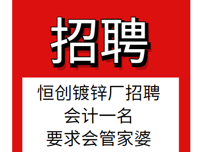 恒创镀锌厂招聘会计一名,要求会管家婆,工资面议,手机15081716979