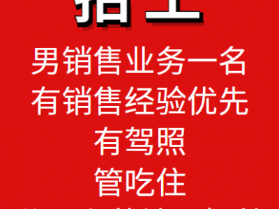 招男销售业务一名,有销售经验优先,有驾照,管吃住。公司主营钻尾螺丝