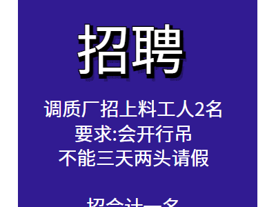 调质厂招上料工人2名,要求:会开行吊,不能三天两头请假。