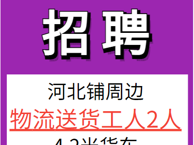 招聘:河北铺周边物流送货工人2人。4.2米货车,工作地点在永年众腾汽车城东边,200元/天中午管饭,不能长干的勿扰,联系电话13930042666