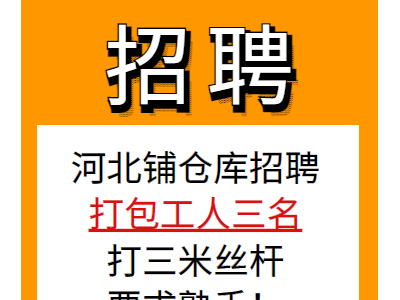 河北铺仓库招聘打包工人三名,打三米丝杆,要求熟手!联系电话15630071512