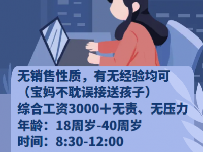 无销售性质,有无经验均可(宝妈不耽误接送孩子)18-40周岁