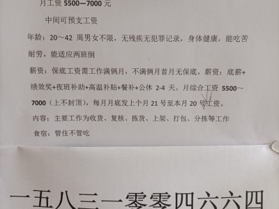 邯郸市邯山区物流招聘打包,分拣,上架男女不限年龄20-45周,工资5500——7000