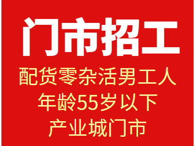 招工:配货零杂活男工人一名,年龄55岁以下。