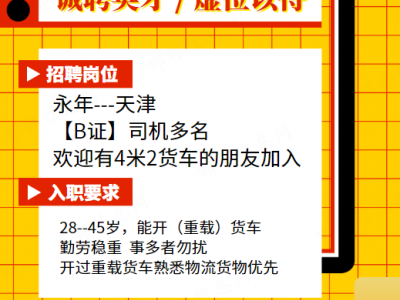 要求:28--45岁,能开(重载)货车 ,勤劳稳重 事多者勿扰,开过重载货车熟悉物流货物优先