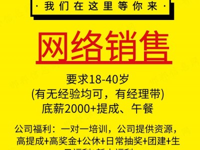 高薪诚聘网络销售(18-40岁)底薪2000+提成,一对一培训,公司提供资源,高提成+高奖金+公休+日常抽奖+团建+生日福利+新人福利