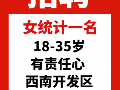 招聘 西南开发区女统计一名要求 18-35岁有责任心 ,