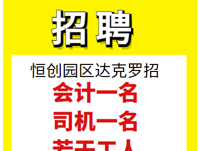 恒创园区达克罗,招会计一名,司机一名,若干工人,有意者请联系