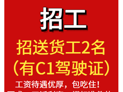 天津标准件仓库:招送货(有C1驾驶证)2名,工资待遇优厚,包吃住!要求:干活利索,懂标准件的