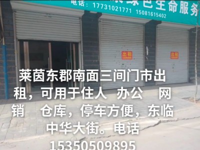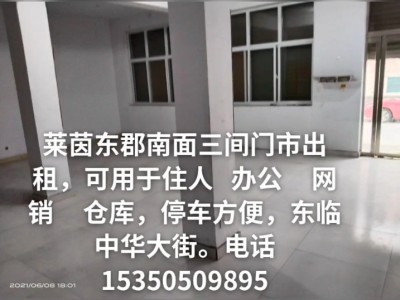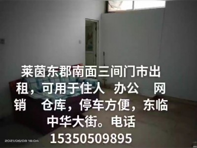 莱茵东郡南面三间门市出租有两个套间可住人,可做仓库办公网销