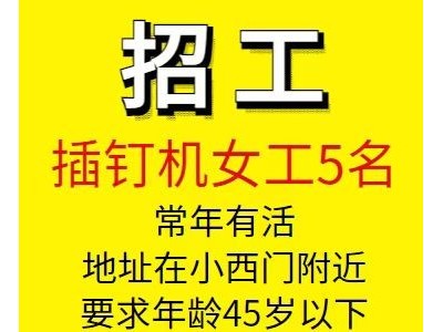 女工5名年龄45以下 地址在小西门附近 常年有活三天打鱼两天晒网勿扰