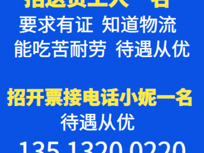 名关北环招送货工人一名 要求有证 知道物流 能吃苦耐劳 待遇从优 招开票接电话小妮一名 待遇从优