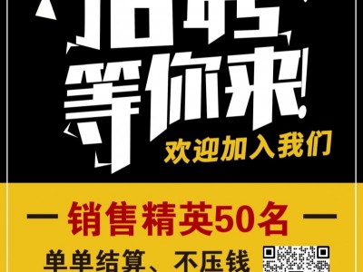 招聘销售精英50名一单单结算、不压钱市场货、非常好卖自由发挥打鱼晒网勿扰不开早会不跳舞电话:(微信同号)地址:飞宇23排B17