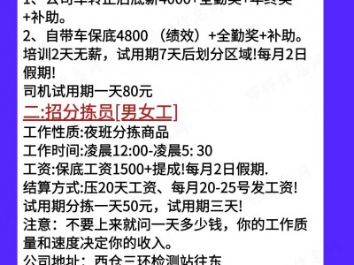 2、自带车保底4800 (绩效)+全勤奖+补助。
