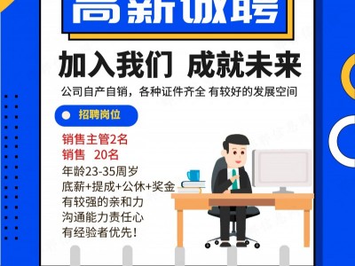 邯郸市鸿卓工矿配件有限公司招聘:销售主管2名、销售20名;23-35周岁,底薪+提成+公休+奖金,公司自产自销,各种证件齐全 。电话: 15614919845