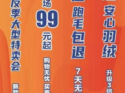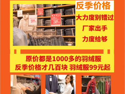 百货大楼二楼锦杨宁,天俊一号深圳女装店,反季特卖会开始了!原价都是1000多的羽绒服,反季价格才几百块,羽绒服99元起!